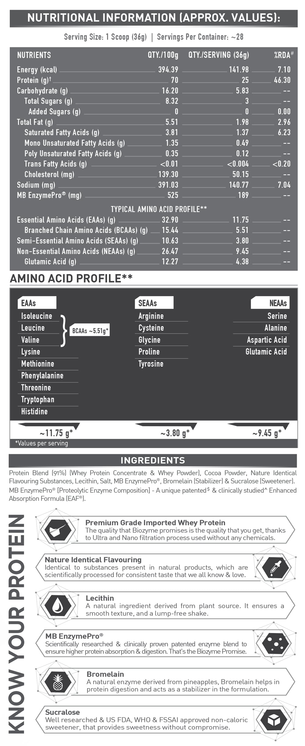 - India's 1st clinically proven whey protein: Biozyme Performance whey is proven for superior absorption and enhanced muscle-building efficacy. The results of the clinical study, registered with the ICMR's Clinical Trials Registry - India, highlight its effectiveness in reducing stomach discomfort commonly associated with high-protein digestion.