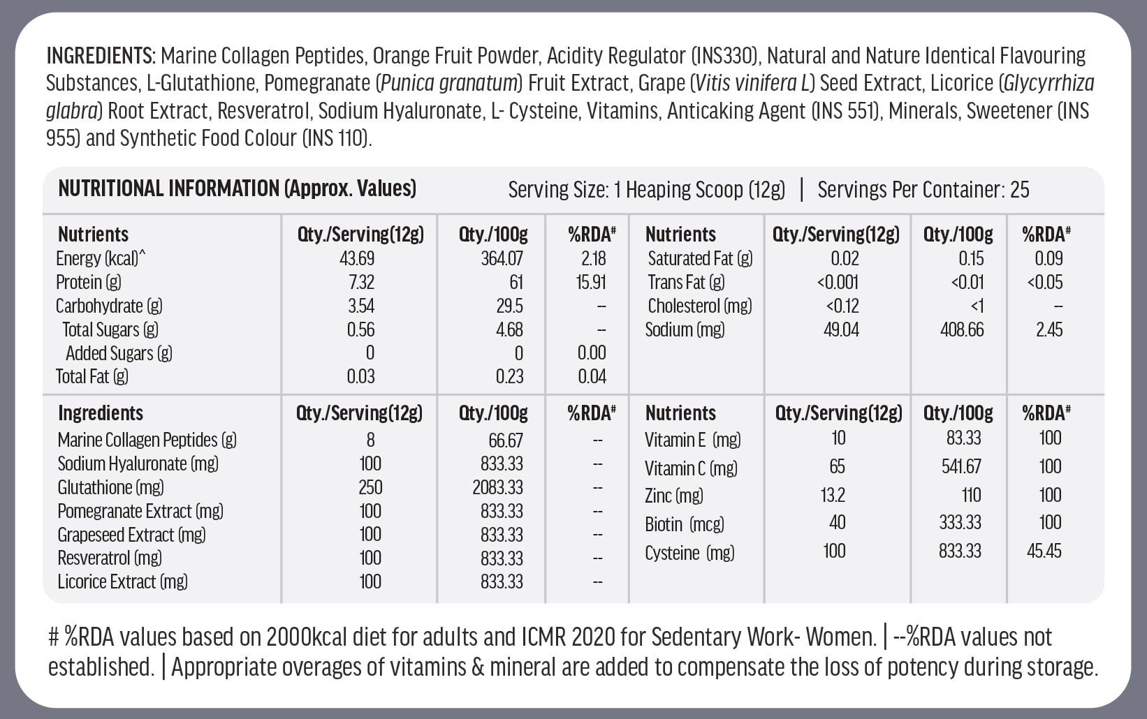 - 12 Ingredients. One Balanced Scoop: More than collagen and glutathione, this advanced skin supplement blends 12 powerful ingredients including hyaluronic acid, licorice extract, and resveratrol to brighten, hydrate, and rejuvenate skin from within.