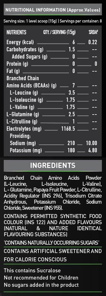 - Keeps you energized through your workout: Muscleblaze BCAA provides you with a blend of electrolytes that keep you hydrated along with 1 gram of citrulline malate that improves blood flow to your muscles to give you a better pump and more energy.