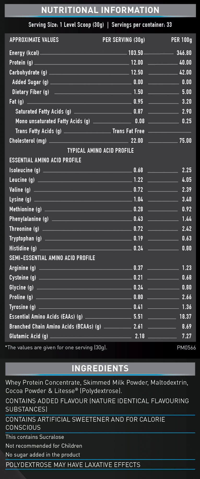 - Whey Protein Concentrate, protein source derived from milk is the primary source of protein in the product