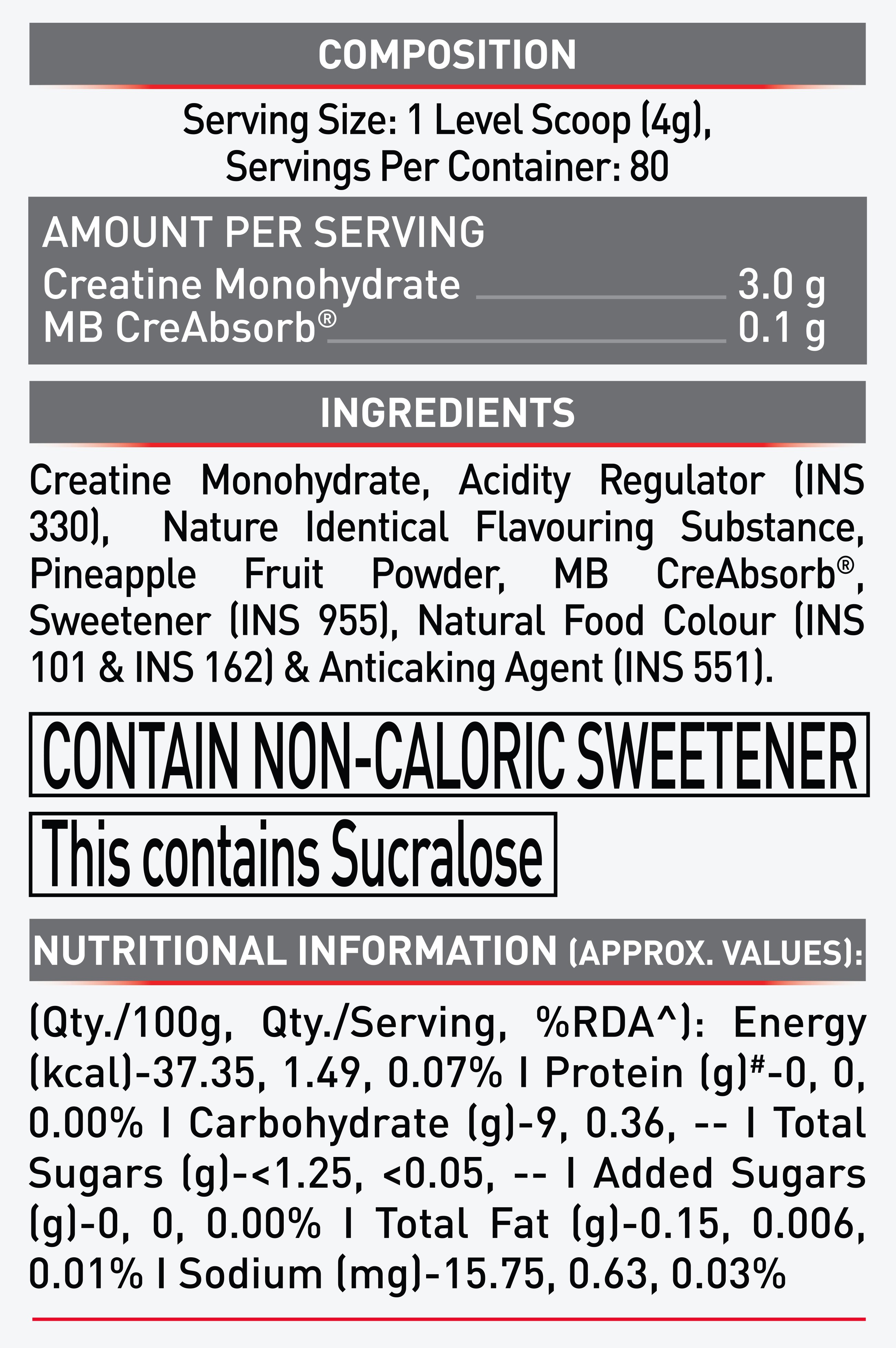 - Each serving of MuscleBlaze CreAMP Creatine Monohydrate serves 3g of fast-absorbing and highly bioavailable creatine for building strength and endurance
