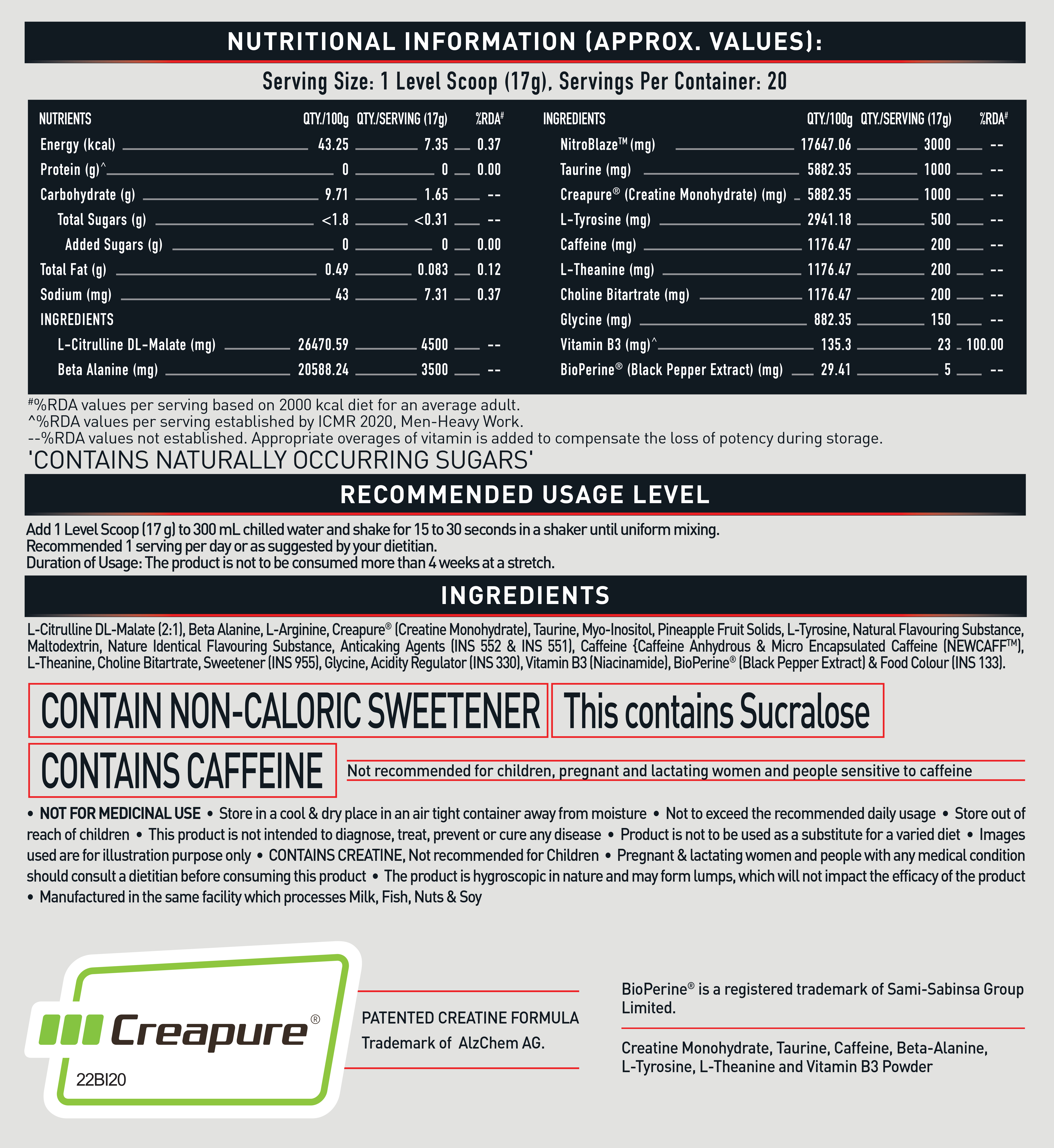 - Caffeine Rush: Fuel your workout with a potent dose of 200mg of caffeine, providing a sustained energy boost that helps you power through your toughest sets and reps