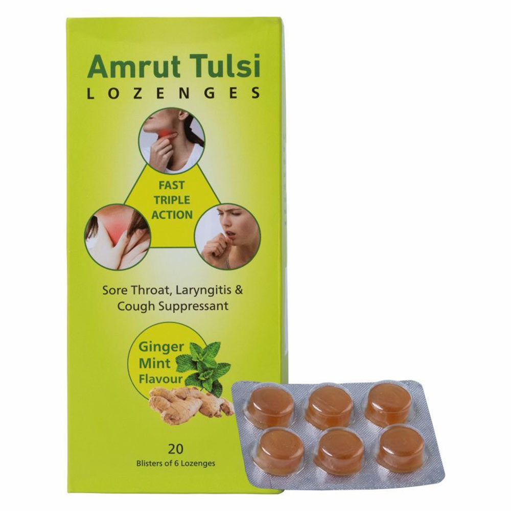 Amrut Tulsi Lozenges (Ginger Mint), 20 Strip(s)