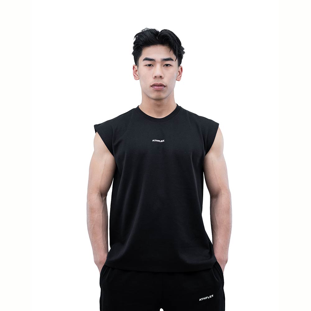 Athflex Men's Sleeveless Elevate Boxy Tank, Black, Medium
