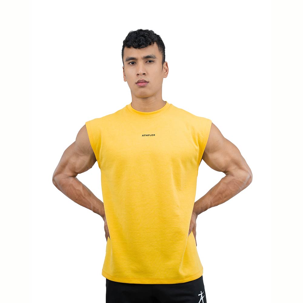 Athflex Men's Sleeveless Elevate Boxy Tank, Medium, Yellow