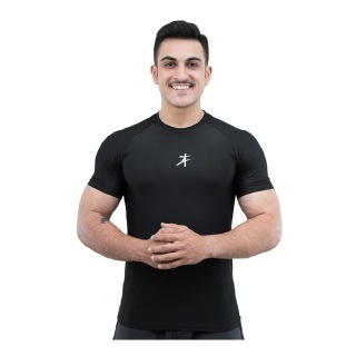 Athflex Men's Slim Fit Round Neck Ribbed T-Shirt, Black, XXL