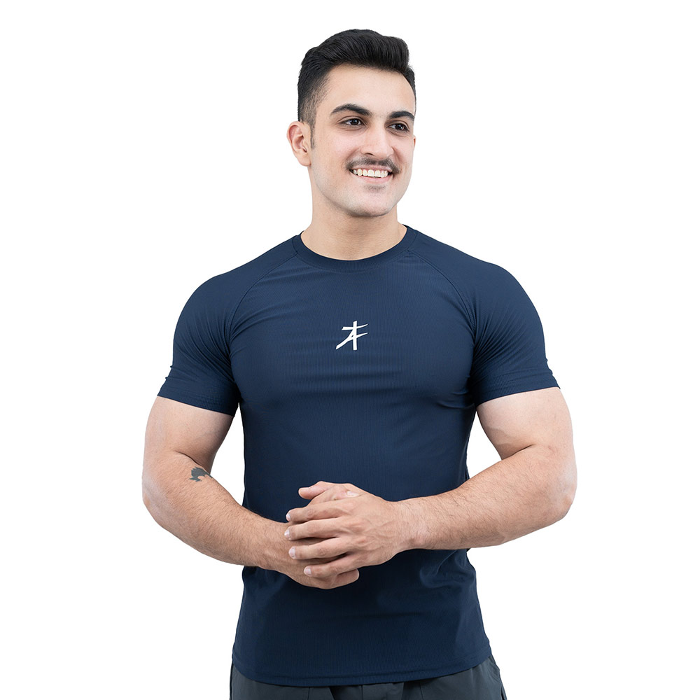 Athflex Men's Slim Fit Round Neck Ribbed T-Shirt, Navy Blue, XXL