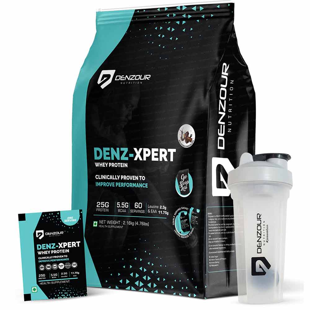 Denzour Nutrition Denz-Xpert Whey Protein, 60 sachets/pack, Belgium Chocolate (with 500ml Shaker)