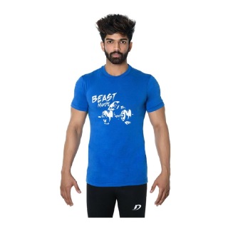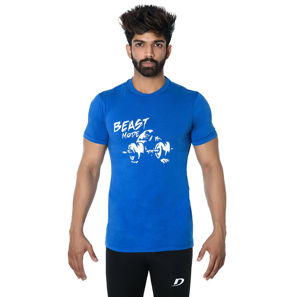DK Active Wear Half Sleeve Gym T Shirt (Beast Mode), Royal Blue and White, XL