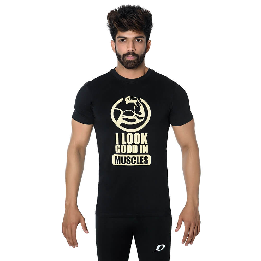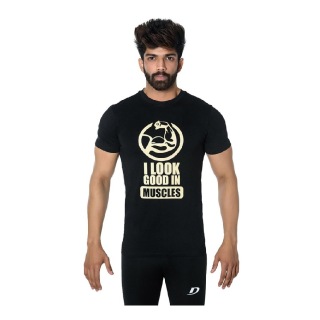 DK Active Wear Half Sleeve Gym T Shirt (Look Good), Black, Medium