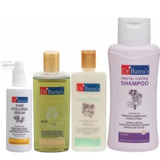 Dr Batra's Hair Vitalizing Serum 125 ml, Hair Fall Control Shampoo - 500 ml, Hair Oil - 200 ml & Conditioner 200 ml Combo, 4 Piece(s)/Pack, Hair Care