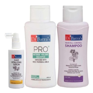 Dr Batra's Hair Vitalizing Serum, Hair Fall Control Shampoo - 500 ml & Pro+ Intense Volume Shampoo - 500 ml Combo, 3 Piece(s)/Pack, Hair Care