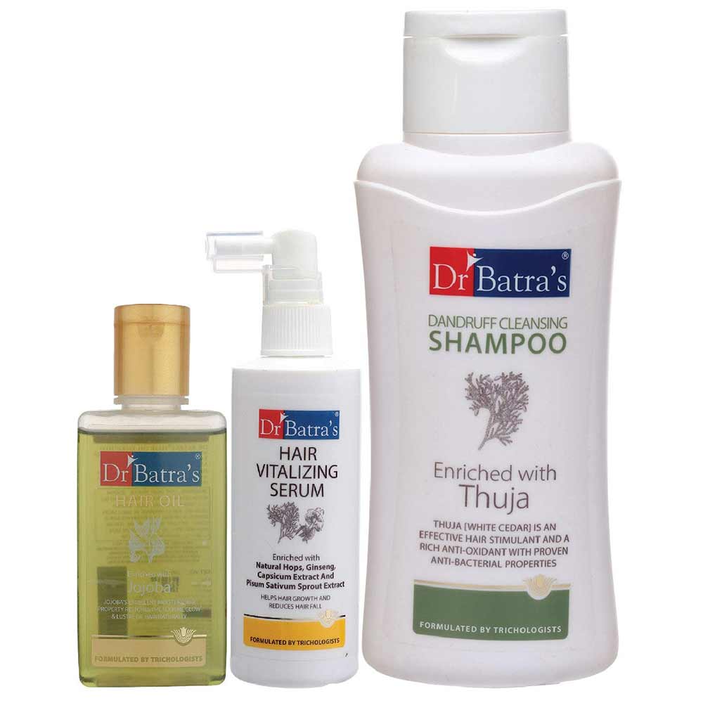 Dr Batra's Hair Vitalizing Serum, Dandruff Cleansing Shampoo - 500 ml & Hair Oil - 100 ml Combo, 3 Piece(s)/Pack, Dandruff Control