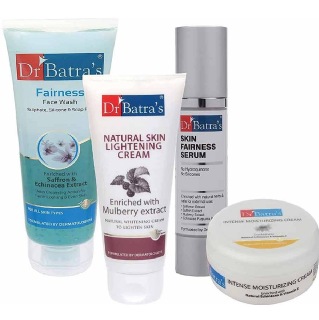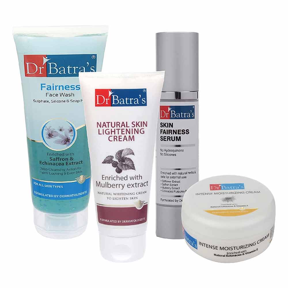 Dr Batra's Skin Fairness Serum, Fairness Face Wash 100 g, Natural Skin Lightening Cream & Intense Moisturizing Cream Combo, 4 Piece(s)/Pack, Healthy Skin