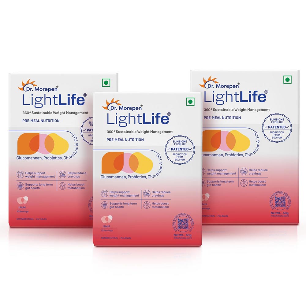 Dr. Morepen LightLife Pre-Meal Nutrition, 10 sachets/pack, Litchi (Pack of 3)