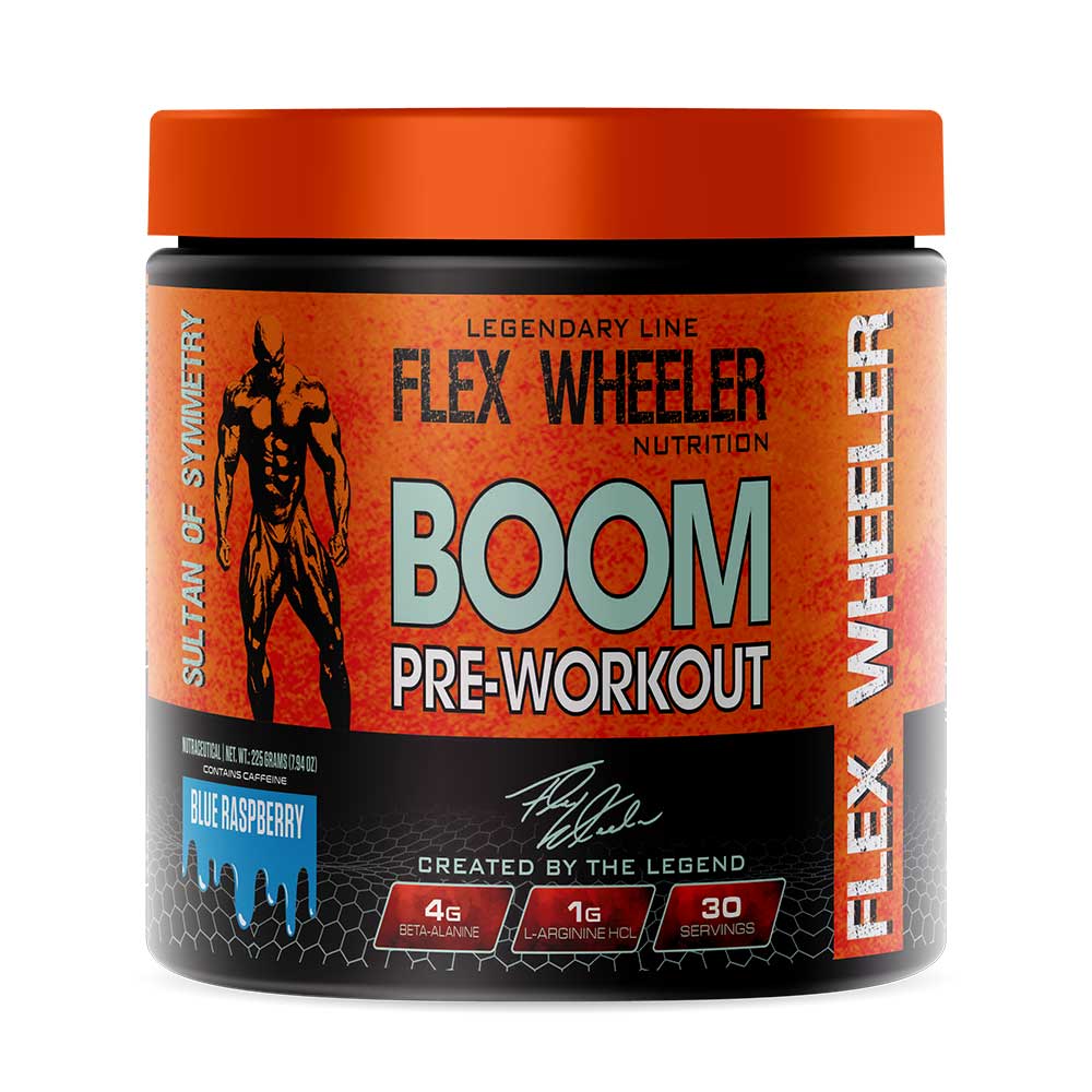 Flex Wheeler Nutrition Boom Pre Workout, 230 g (0.50 lb), Blue Raspberry