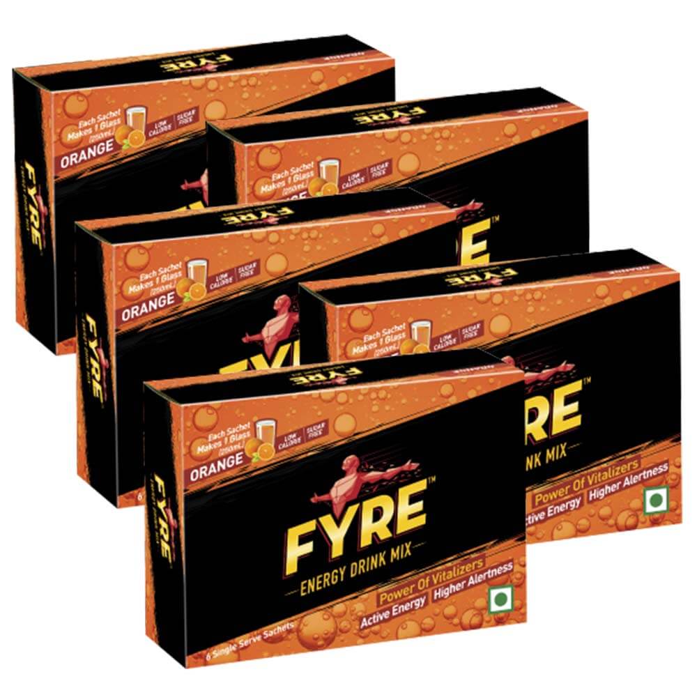 Fyre Energy Drink Mix Pack of 5, 30 sachets/pack, Orange