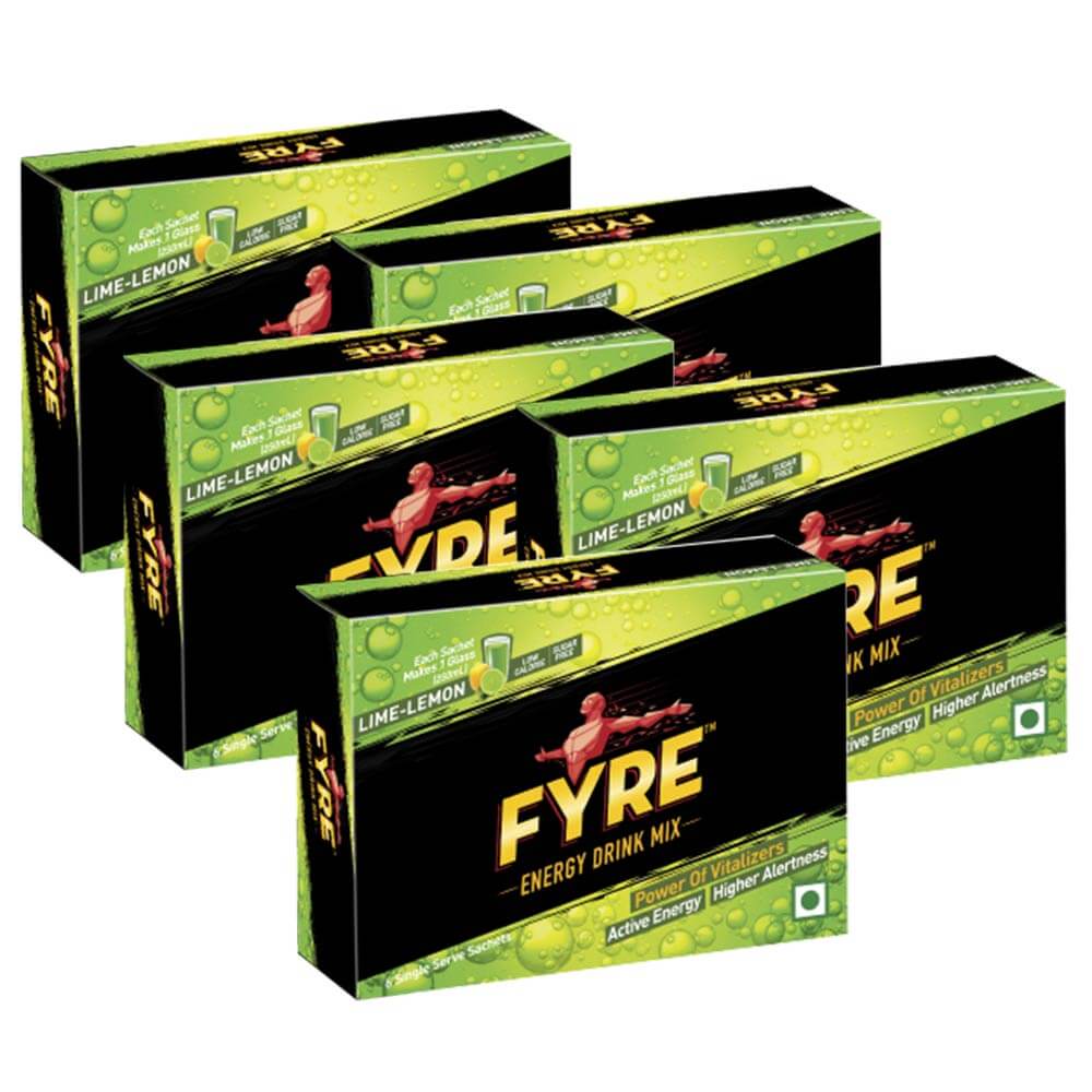 Fyre Energy Drink Mix Pack of 5, 30 sachets/pack, Lime Lemon