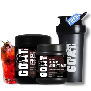 G.O.A.T Fit Colossal Pre Workout 0.39 lb & Creatine Monohydrate 0.22 lb Combo with Free Shaker, 3 Piece(s)/Pack, Strawberry Kiwi & Unflavoured