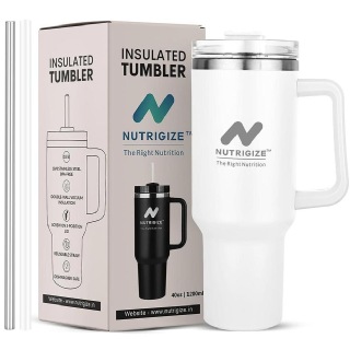 GHC Nutrigize Stainless Steel Tumbler Hot and Cold with Handle and Steel straw, 1.2 L, White