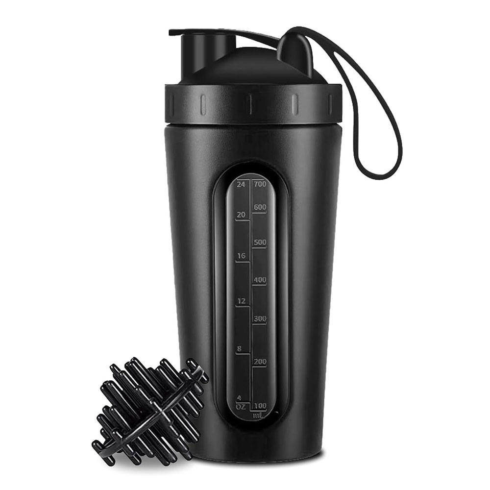 GHC Nutrigize Steel Shaker with Glass Window for Measurement, 700 ml, Black