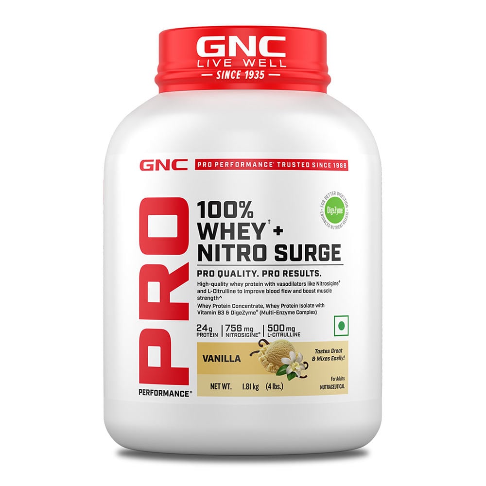 GNC Pro Performance 100% Whey + Nitro Surge, 1.82 kg (4 lb), Vanilla
