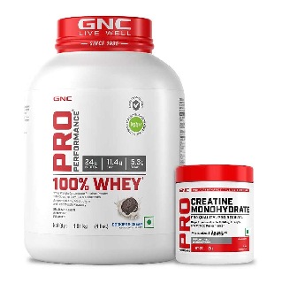 GNC Pro Performance 100% Whey Protein, 1.82 kg (4 lb), Cookie & Cream with Creatine Monohydrate 0.55 lb Combo