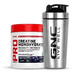 GNC Pro Performance Pure Micronized Creatine Monohydrate, 100 g (0.22 lb), Blueberry with Steel Shaker 750ml