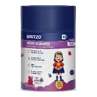Vitamins & SupplementsMultivitaminsMultivitamins - ChildrenGritzo Iron Gummies with Folic Acid and Vitamin C for 7-9 Years Girls