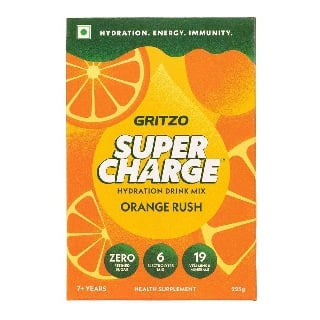 Gritzo Supercharge, Hydration Drink Mix, 15 Piece(s)/Pack, Orange Rush Flavour