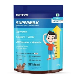 Gritzo SuperMilk Height+ for 2-6 Yrs Personalized Protein & Nutrition Drink Mix OP, 800 g, Double Chocolate