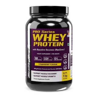 HealthyHey Nutrition Sports Whey Protein Concentrate, 1 kg (2.2 lb), Strawberry