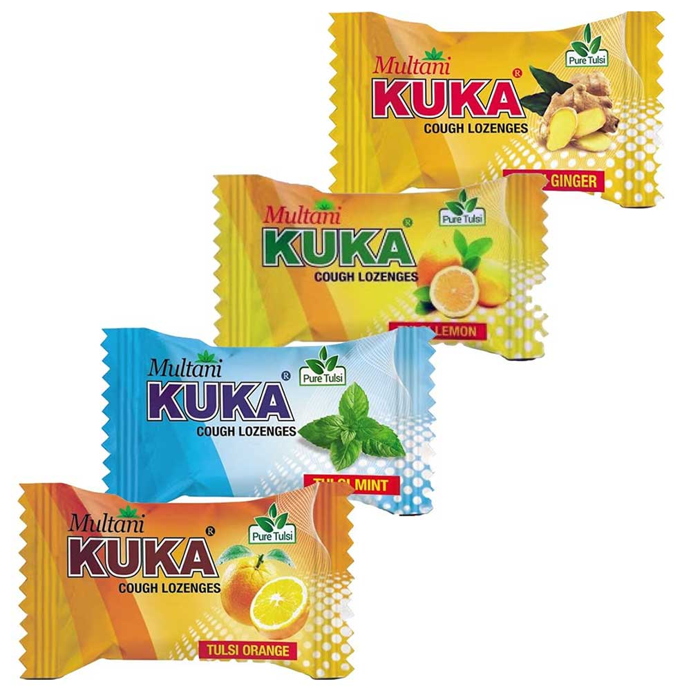 Multani Kuka Cough Lozenges Tulsi Orange, Tulsi Ginger, Tulsi Mint, Tulsi Lemon Combo, 4 Piece(s)/Pack