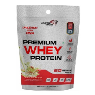 Muscle Garage Premium Whey Protein, 2 kg (4.4 lb), Kesar Pista
