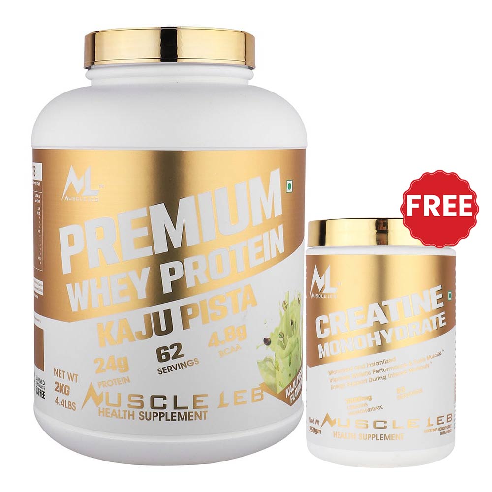 Muscle Leb Premium Whey Protein, 2 kg (4.4 lb), Kaju Pista
