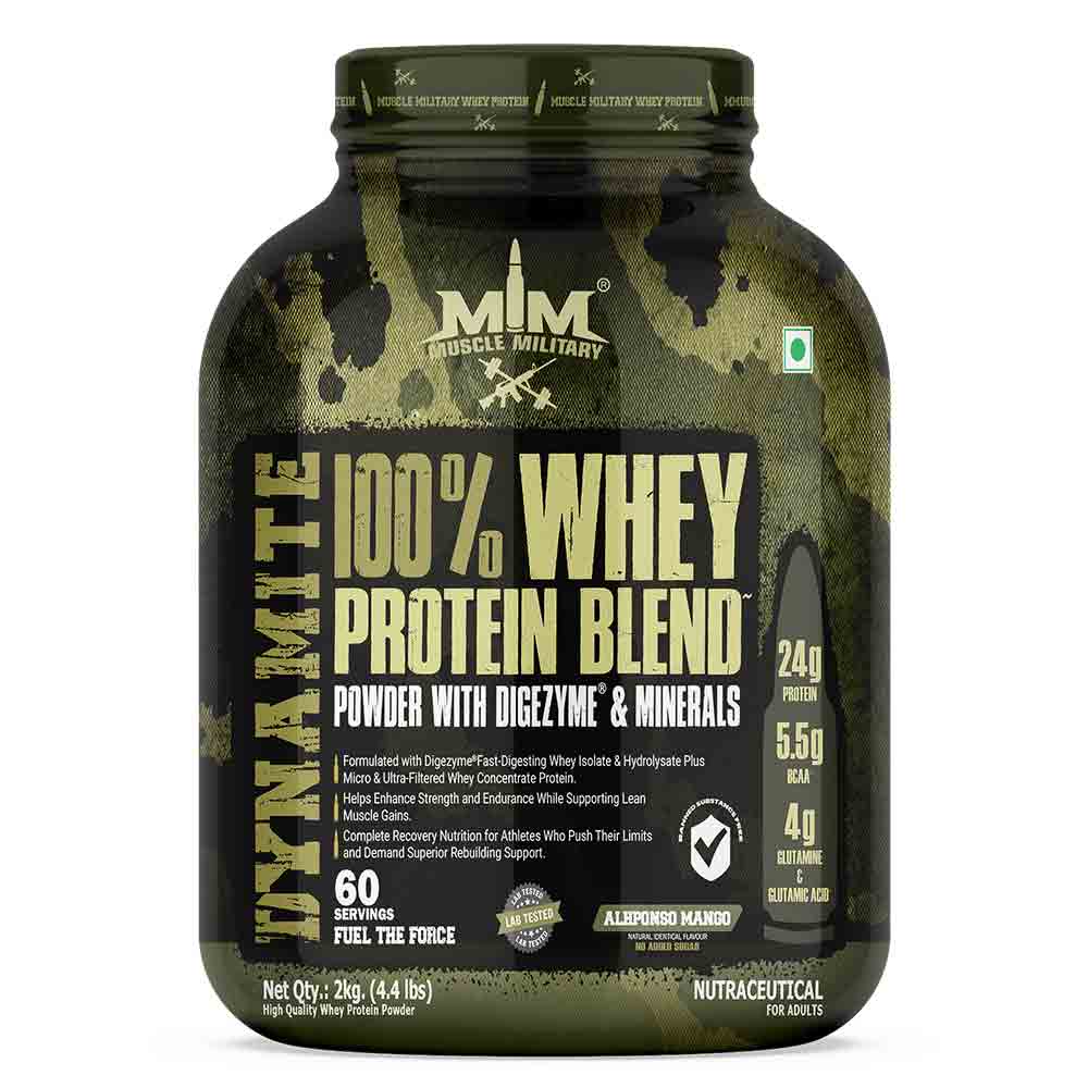Muscle Military Dynamite 100% Whey Protein Blend, 2 kg (4.4 lb), Alphonso Mango