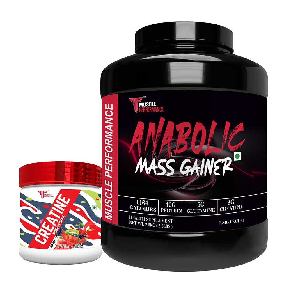 Muscle Performance Anabolic Mass Gainer with Creatine Monohydrate 0.66 lbs Combo, 2.5 kg (5.5 lb), Rabri Kulfi