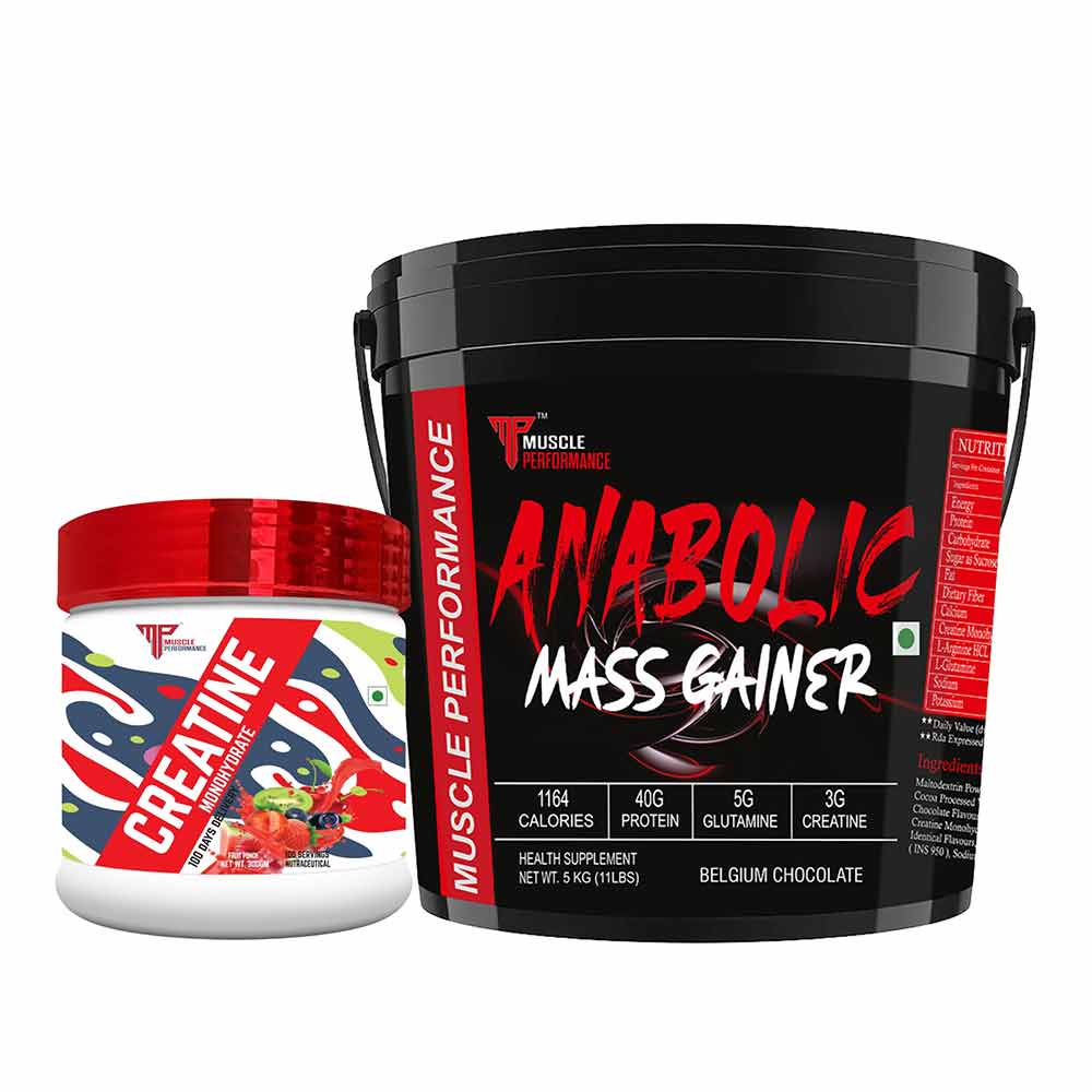 Muscle Performance Anabolic Mass Gainer with Creatine Monohydrate 0.66 lbs Combo, 5 kg (11 lb), Belgium Chocolate