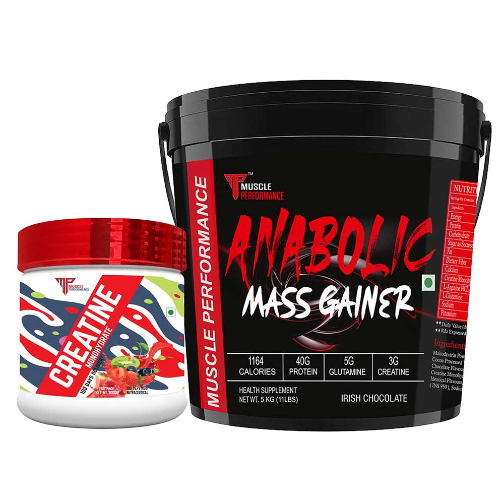 Muscle Performance Anabolic Mass Gainer with Creatine Monohydrate 0.66 lbs Combo, 5 kg (11 lb), Irish Chocolate