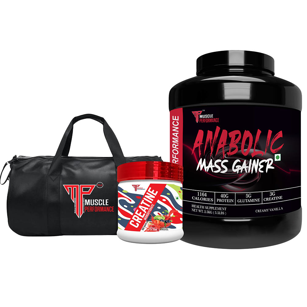 Muscle Performance Anabolic Mass Gainer with Creatine Monohydrate 0.66 lbs & Gym Bag Combo, 2.5 kg (5.5 lb), Creamy Vanilla