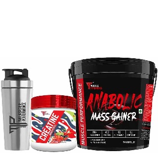 Muscle Performance Anabolic Mass Gainer with Creatine Monohydrate 0.66 lbs & Steel Shaker Combo, 5 kg (11 lb), Creamy Vanilla