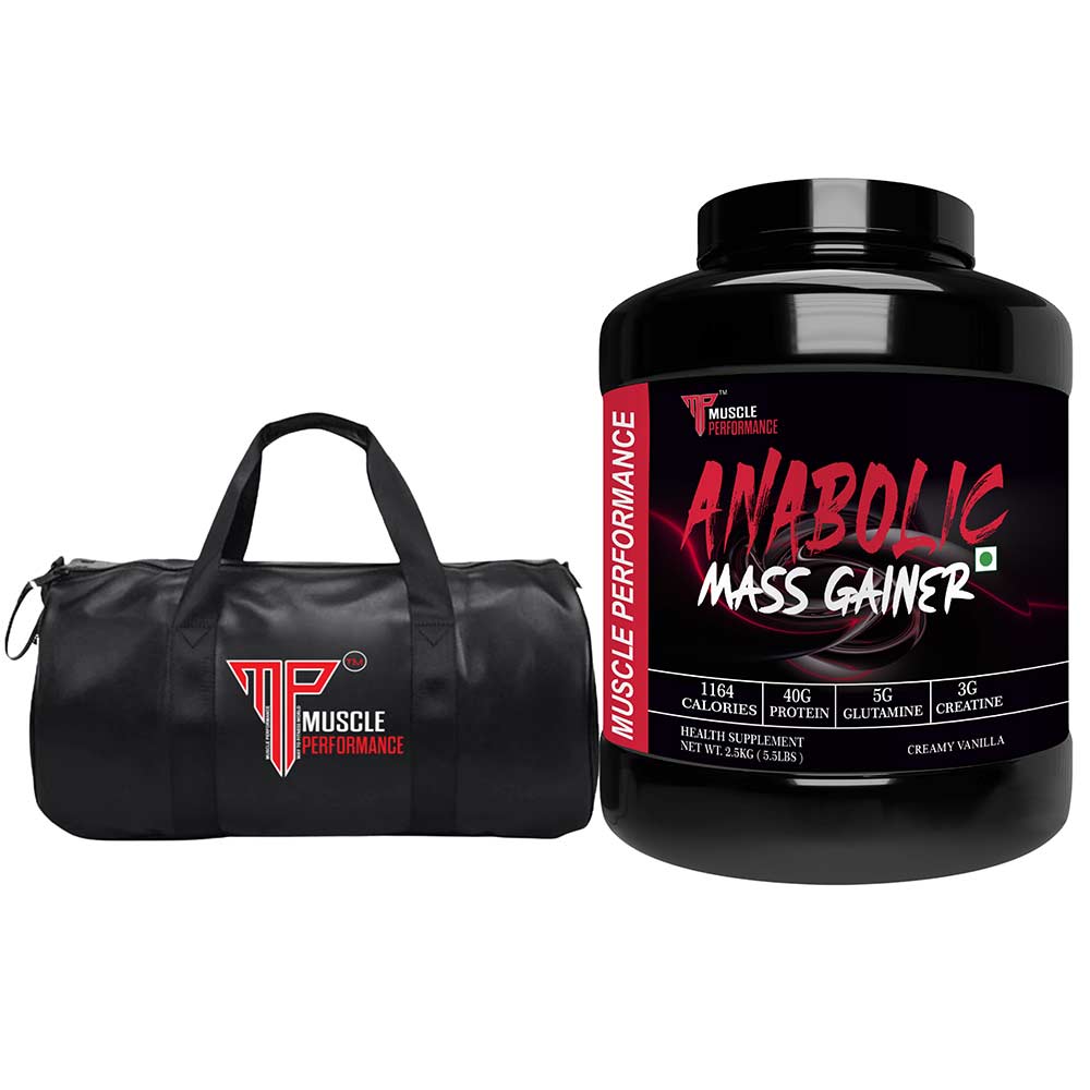 Muscle Performance Anabolic Mass Gainer with Gym Bag Combo, 2.5 kg (5.5 lb), Creamy Vanilla