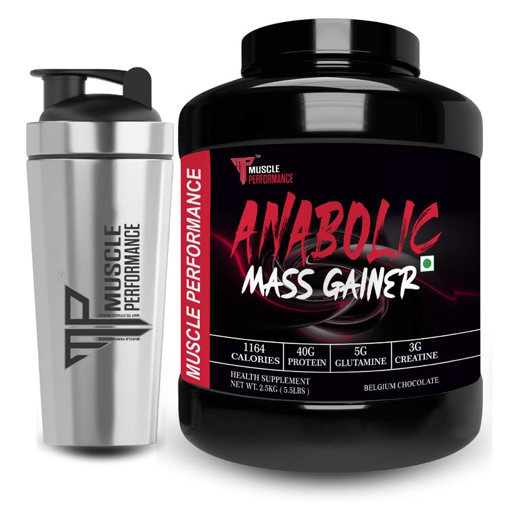 Muscle Performance Anabolic Mass Gainer, 2.5 kg (5.5 lb), Belgium Chocolate with Steel Shaker