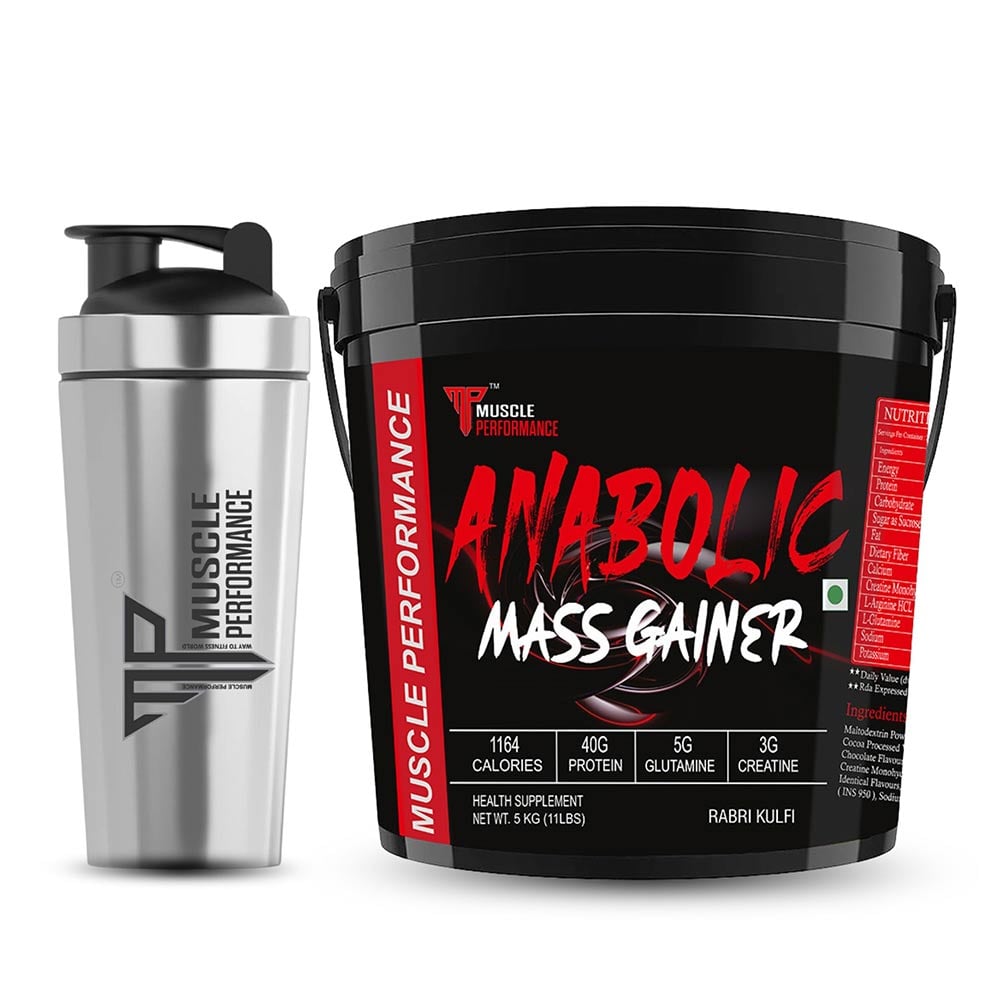 Muscle Performance Anabolic Mass Gainer, 5 kg (11 lb), Rabri Kulfi with Steel Shaker