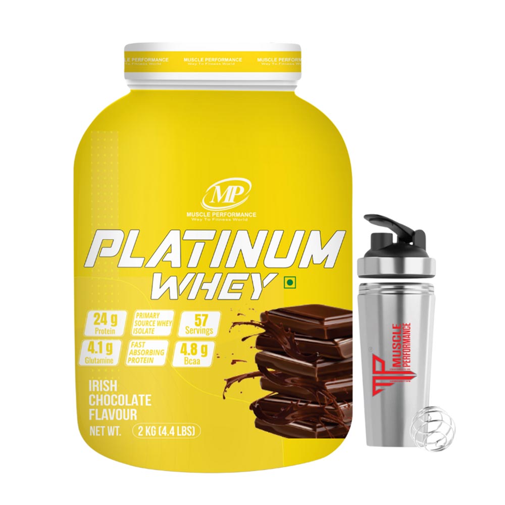Muscle Performance Platinum Whey, 2 kg (4.4 lb), Irish Chocolate with Steel Shaker
