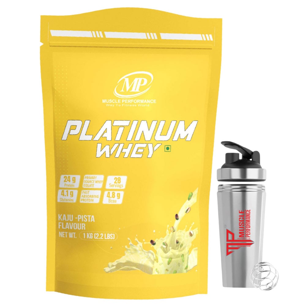 Muscle Performance Platinum Whey, 1 kg (2.2 lb), Kaju-Pista with Steel Shaker