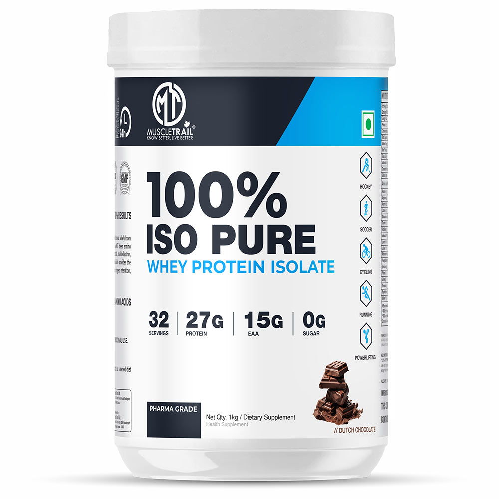 Muscle Trail 100% Iso Pure Whey Protein Isolate, 1 kg (2.2 lb), Dutch Chocolate