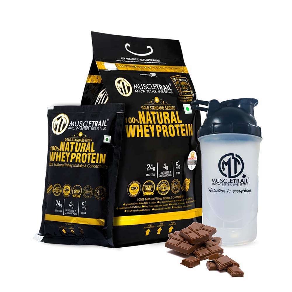 1 - Muscle Trail Gold Standard Series 100% Natural Whey Protein,  60 sachets/pack  Chocolate (with Free Shaker Inside)