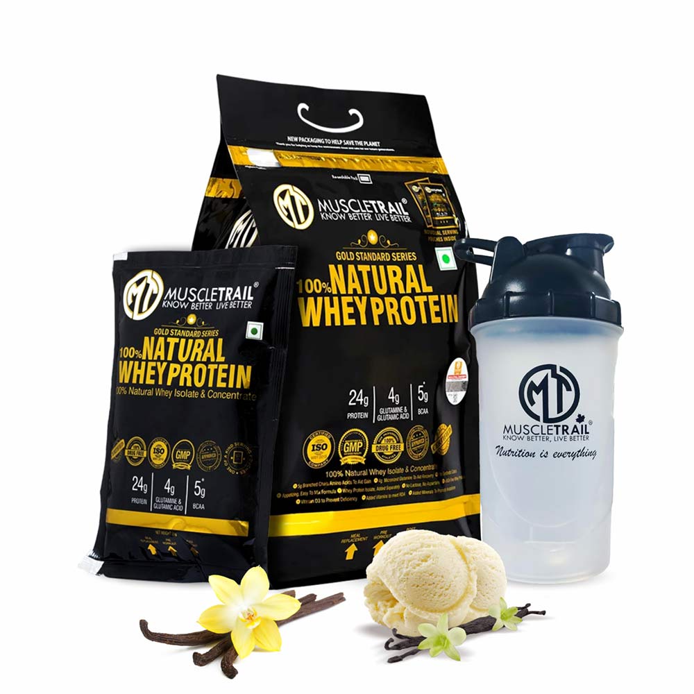 Muscle Trail Gold Standard Series 100% Natural Whey Protein, 60 sachets/pack, Vanilla (with Free Shaker Inside)