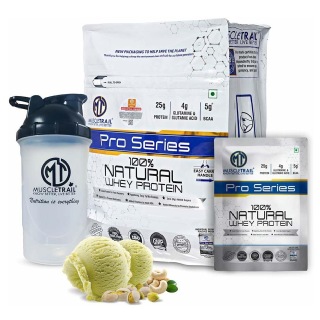 1 - Muscle Trail Pro Series 100% Natural Whey Protein,  50 sachets/pack  Kesar Kaju Pista (with Free Shaker Inside)